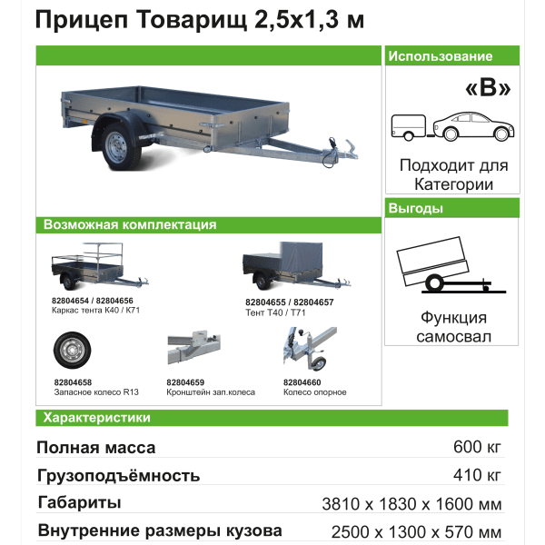 ОСОБЕННОСТИ ЛЕГКОВОГО ПРИЦЕПА ТРЕЙЛЕР ТОВАРИЩ 2,5Х1,3М: